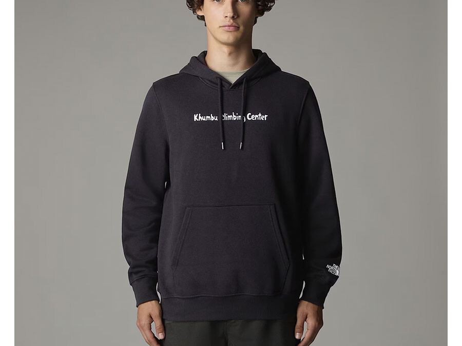 Su diseño incluye un práctico bolsillo tipo canguro que no solo añade funcionalidad, sino que también es perfecto para calentar las manos en días frescos. El logotipo del Khumbu Climbing Center se exhibe con orgullo en el pecho y la parte posterior, reflejando un compromiso con la comunidad de escaladores y el amor por la naturaleza.