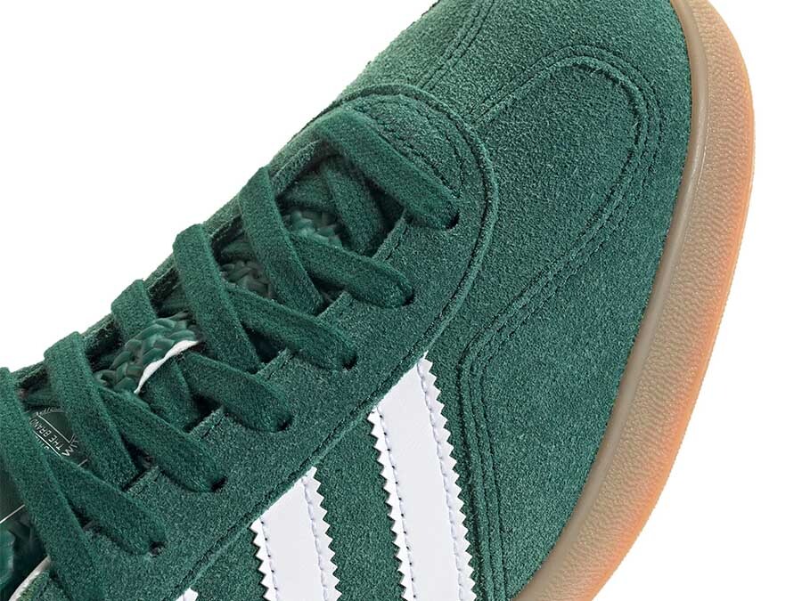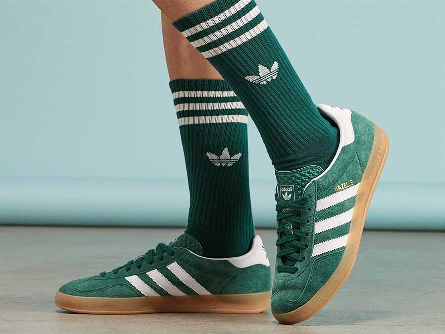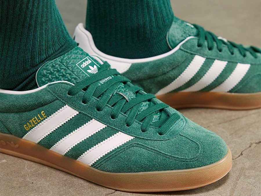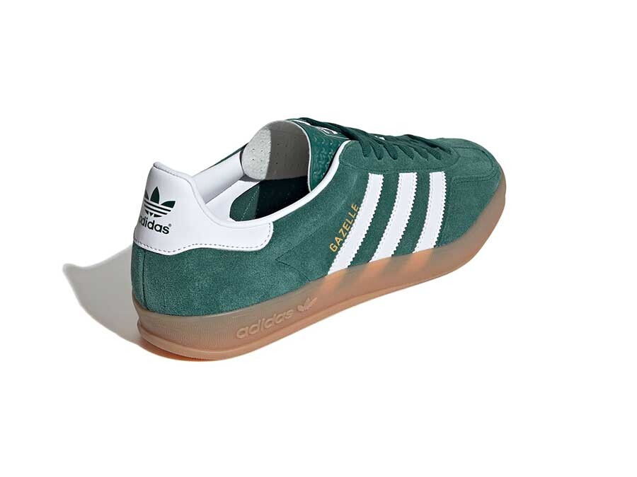 The classic Adidas Gazelle Indoor sneakers are reinvented in a striking green color, perfect for giving a bold touch to your daily casual style.nnAn urban icon:nnLeather upper with synthetic and textile reinforcements: Offers a mix of durability, comfort and breathability.nSustainable internal insole: Made with eco-conscious materials to reduce environmental impact.nRubber sole: Ensures excellent traction and grip for any surface.nGreen I want you green:nnThe vibrant green of the upper of these Gazelle Indoor becomes the protagonist. They are ideal for those looking to stand out from the crowd and create ground-breaking looks.nnDetails that make the difference:nnTrefoil on the tongue: An unmistakable hallmark of the adidas brand.nGold Gazelle branding on the side: Adds a luxurious and exclusive touch.nAdidas branding on the insole and three serrated stripes: Complete the design with distinctive brand details.nA classic with a modern twist:nnThe Adidas Gazelle Indoor are an urban classic that is reinvented with a modern touch. They are perfect to combine with jeans, joggers, skirts or dresses for a casual and casual look.nnFind yours in our store:nnDon't miss the opportunity to give your style a twist. The Adidas Gazelle Indoor in green are available in our online store and in our physical store at Calle Alfonso I, 2 Zaragoza.