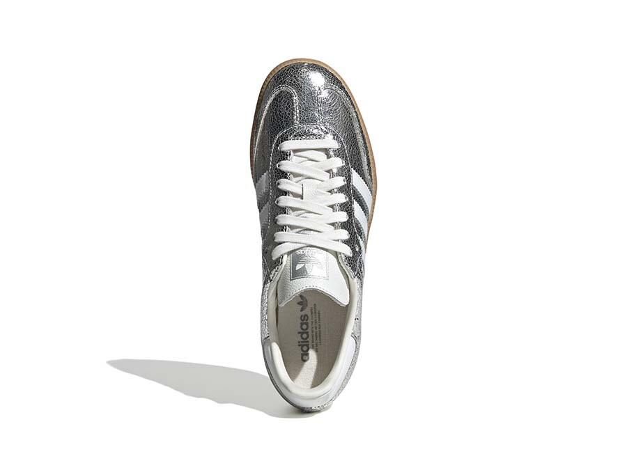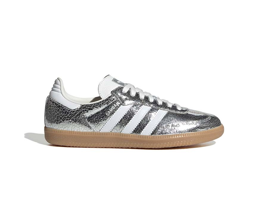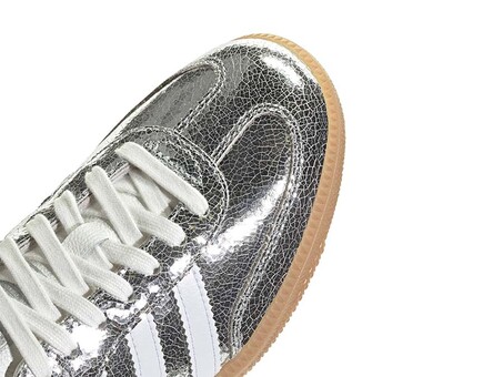 The Adidas Samba OG W Silver is a bold, standout take on a timeless classic, perfect for those looking to make a statement with their style. This edition features a cracked metallic silver leather upper, adding a touch of sophistication and edge—ideal for streetwear enthusiasts aiming to elevate their urban look. Inspired by the rich heritage of adidas Originals, the Samba OG masterfully combines its striking aesthetic with functionality. The durable rubber sole provides excellent traction, while the lace closure ensures a comfortable and secure fit for everyday wear. This iconic silhouette, retaining its retro essence, is the perfect choice for those who want to blend identity and style with every step. Discover the Adidas Samba OG W Silver at our store on Calle Alfonso I, 2 in Zaragoza and experience the exceptional quality and design that define adidas Originals.