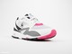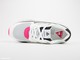 La zapatilla está fabricada en suede que imita al material original y viene en una combinación de blanco, negro y rosa, como el modelo OG.