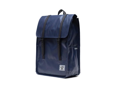 Las Survey Backpack es una mochila fabricada con material reciclado de 9 botellas de agua. Lleva un revestimiento mate resistente al agua y otras condiciones climáticas adversas. Lleva un compartimento para portátil de hasta 15” , funda de almacenamiento con cremallera oculta y tirador de goma, bolsillos dobles para botellas de agua y una base reforzada.