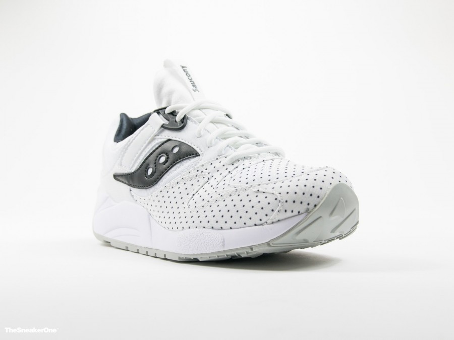 Saucony nos propone este pack premium basado en la Saucony Grid 9000 con un denominador común, los topos, de ahí su nombre "Dots Pack". El modelo que nos ocupa viene con el upper en blanco y con detalles en negro.